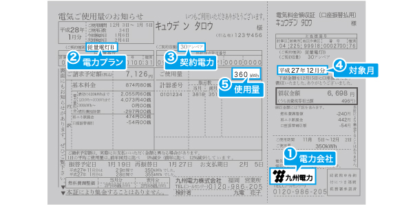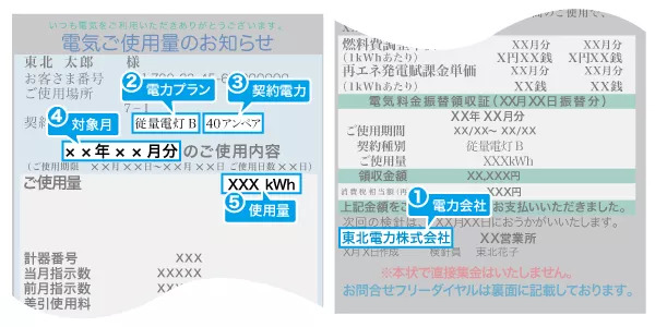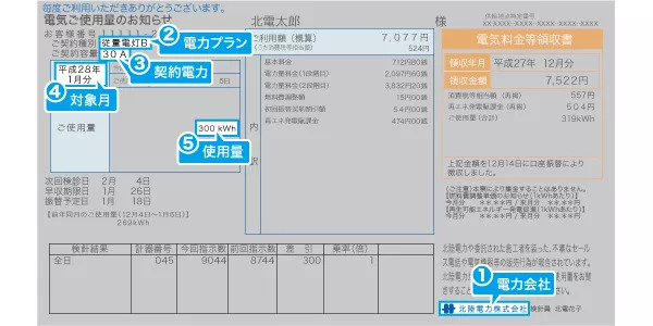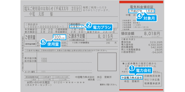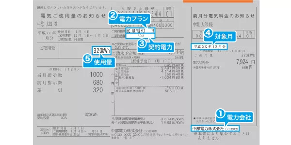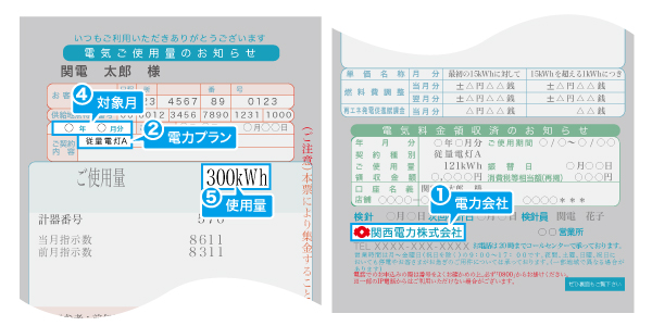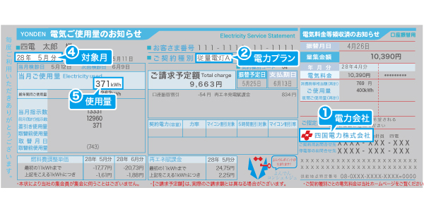 明細の見本をご参考に、現在のご契約内容をご入力ください。